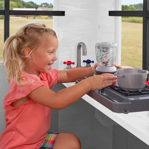 - Ready for Fun: Includes play kitchen, powered blender, dinner bell, and functional half door to inspire imaginative play