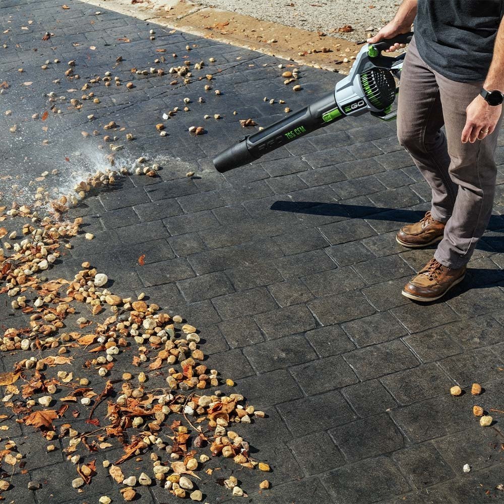The EGO POWER+ 765 CFM Blower delivers powerful clearing performance with air speeds up to 200 MPH and up to 765 CFM. Its speed control dial allows you to adjust your airflow from 260 CFM to 580 CFM for ultimate control. Activate turbo mode when you need to power through heavy debris including wet leaves, rocks, mud, and snow at 765 CFM and up to 200 MPH with the tapered nozzle attached. The variable speed trigger introduces a redesigned cruise control dial for consistent blowing. This leaf blower features a high-efficiency brushless motor that delivers long runtimes, low vibrations, and an extended motor life. Turbine fan engineering, inspired by advanced aeronautics technology, performs better than premium gas leaf blowers. The included tapered and spread nozzles make clearing debris in all conditions easy, and IPX4 weather-resistant construction delivers protection from the elements. This cordless leaf blower delivers up to 90 minutes of average runtime on a single charge with the recommended 56V 5.0Ah ARC Lithium™ battery (available separately). This quiet, lightweight, and compact electric leaf blower gets the job done faster and quieter than gas. Experience Power Beyond Belief™ without the noise, fuss, or fumes.