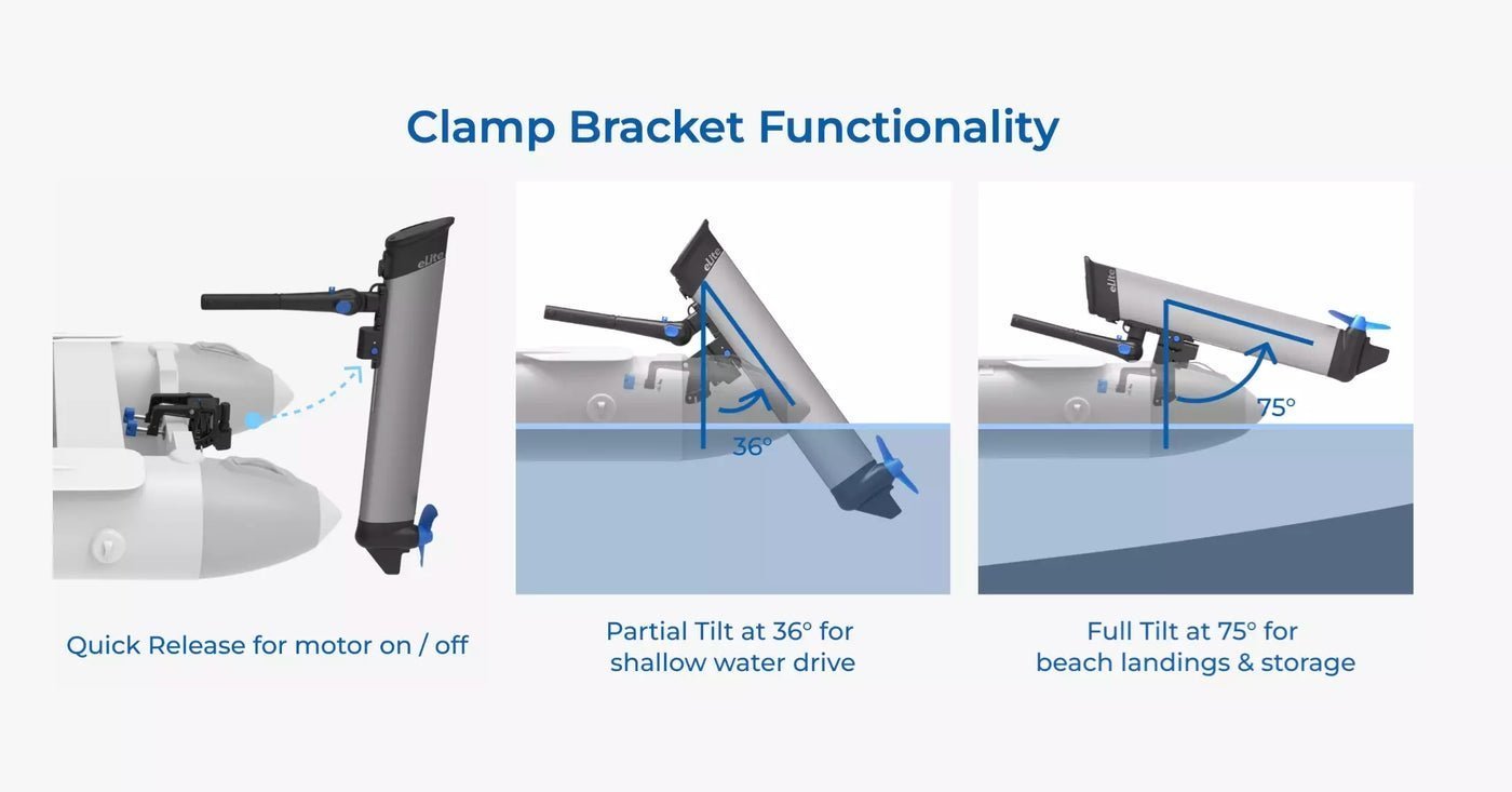 With a motor weight of just 14.7 lbs (or 17.4 lbs with bracket), the eLite is effortlessly portable. Its sleek dimensions—11.7 in x 3 in x 35 in—and minimalist build make it a top choice for boaters looking for efficient, eco-conscious propulsion.
