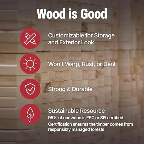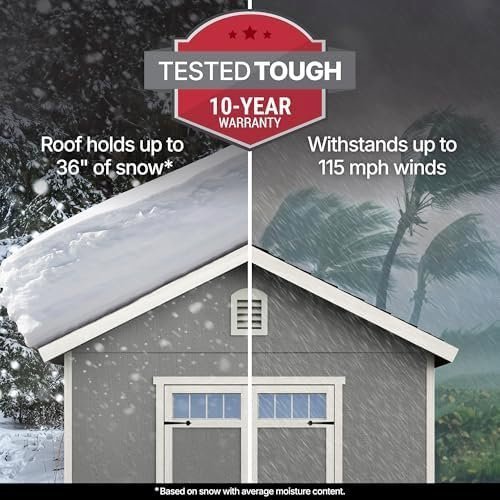 - Personalize your Storage Shed the way you want it – purchase paint and shingles (both sold separately)