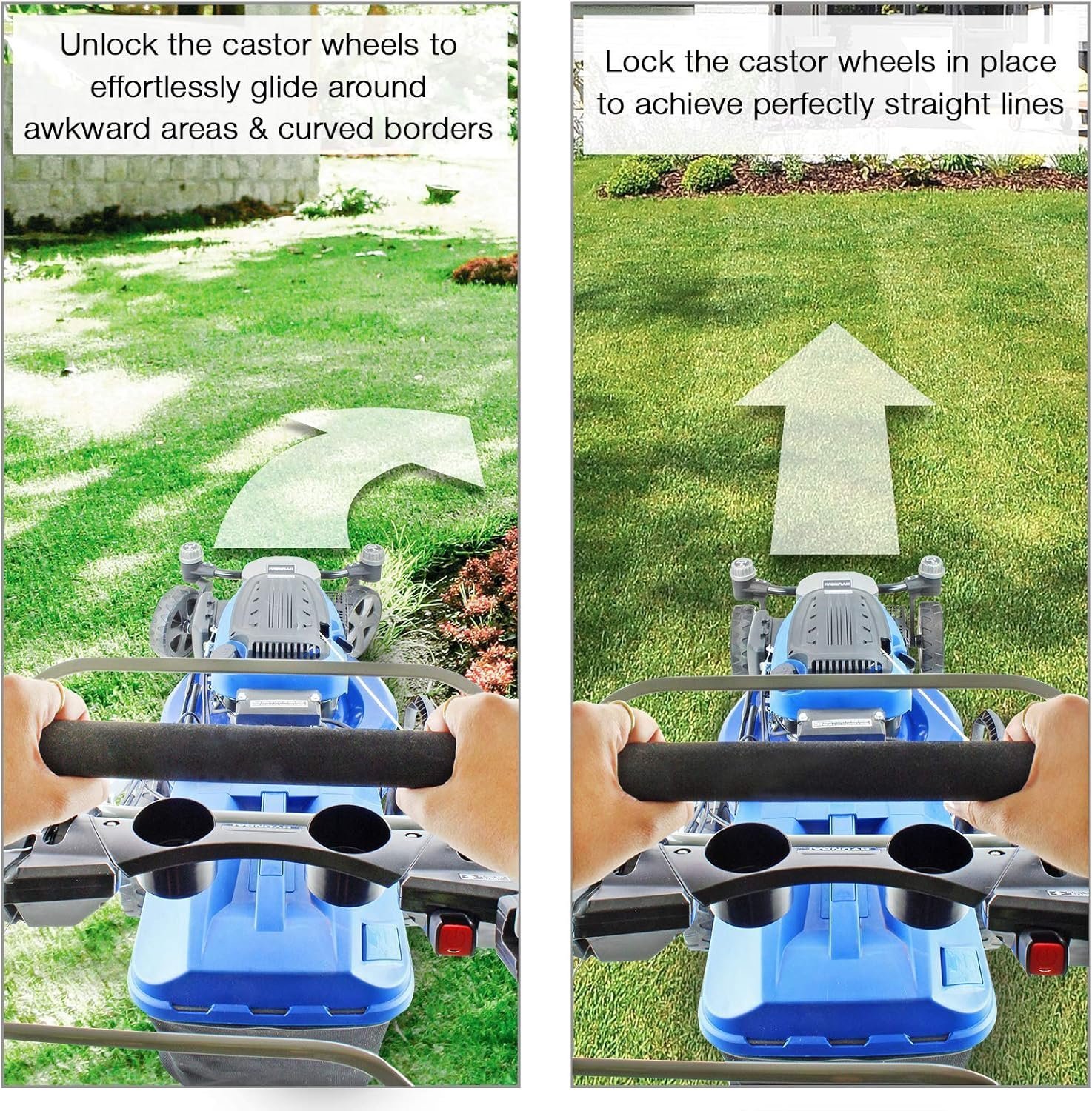 - 360 degree swivelling front wheels: Allows the mower to be turned on its own footprint