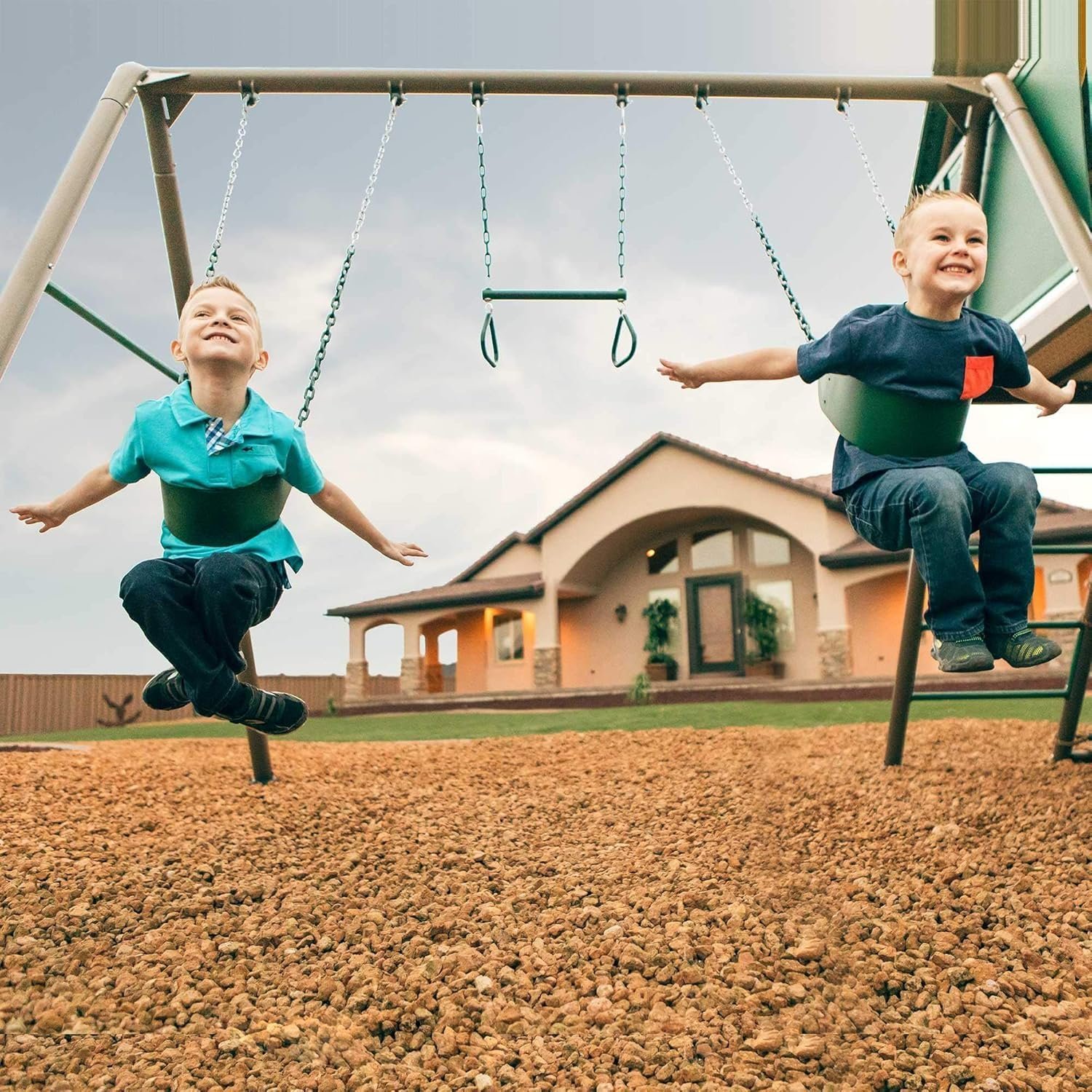 - 1 Spider Swing, 1 Trapeze Bar, and 2 Belt Swings – Soft Rubber Grips on Swing Chains to Prevent Pinching or Snagging