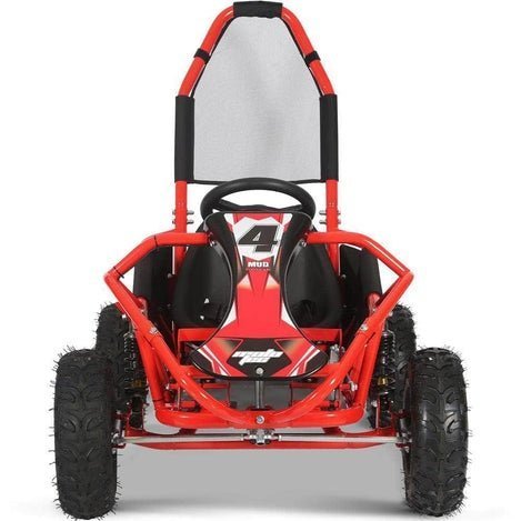Introducing the new MotoTec Mud Monster 98cc 4-stroke Kids Off Road Go Kart with Full Suspension! Featuring a powerful 98cc 4-Stroke OHV Engine (EPA & CARB approved for California Sale), roll cage safety bar, positraction, metal throttle/brake pedals, adjustable seat, more leg room than the competition and seat belt. This go kart is rugged and built to last.