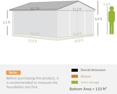 Outsunny 11′ x 13′ Outdoor Storage Shed, Garden Tool Metal Shed with Foundation Kit, Double Lockable Door, Air Vents and Sloping Roof, for Backyard, Patio, Lawn, Light Gray