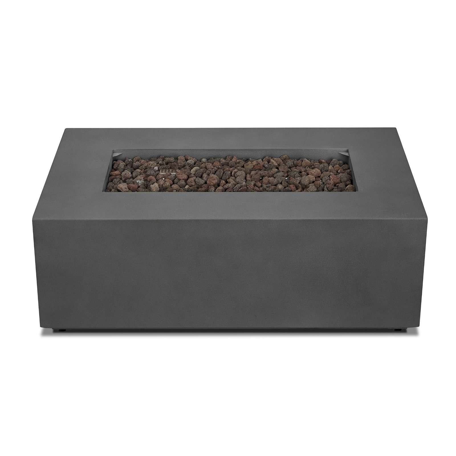 Make a stunning addition to your outdoor space with the clean, contemporary design of the Aegean rectangle gas fire table. Made of durable steel with a lightly textured finish, this outdoor fire table features a reliable push-button ignition and has adjustable flame height. Gas fire pit table with leveling feet, stainless steel burner, burner lid, lava rock, storage cover, propane hose with regulator and natural gas conversion kit are included. Providing 50,000 BTUs of heat, this outdoor propane fire pit can be converted to natural gas by a certified natural gas technician using the conversion kit. When not in use, transform this gas fireplace into a useful outdoor coffee table with the matching burner lid. Complete your patio set with the Aegean outdoor chair, loveseat, sofa and propane tank cover that doubles as a side table. Real Flame® gas fire pits are CSA certified and weather, sun and rust resistant.