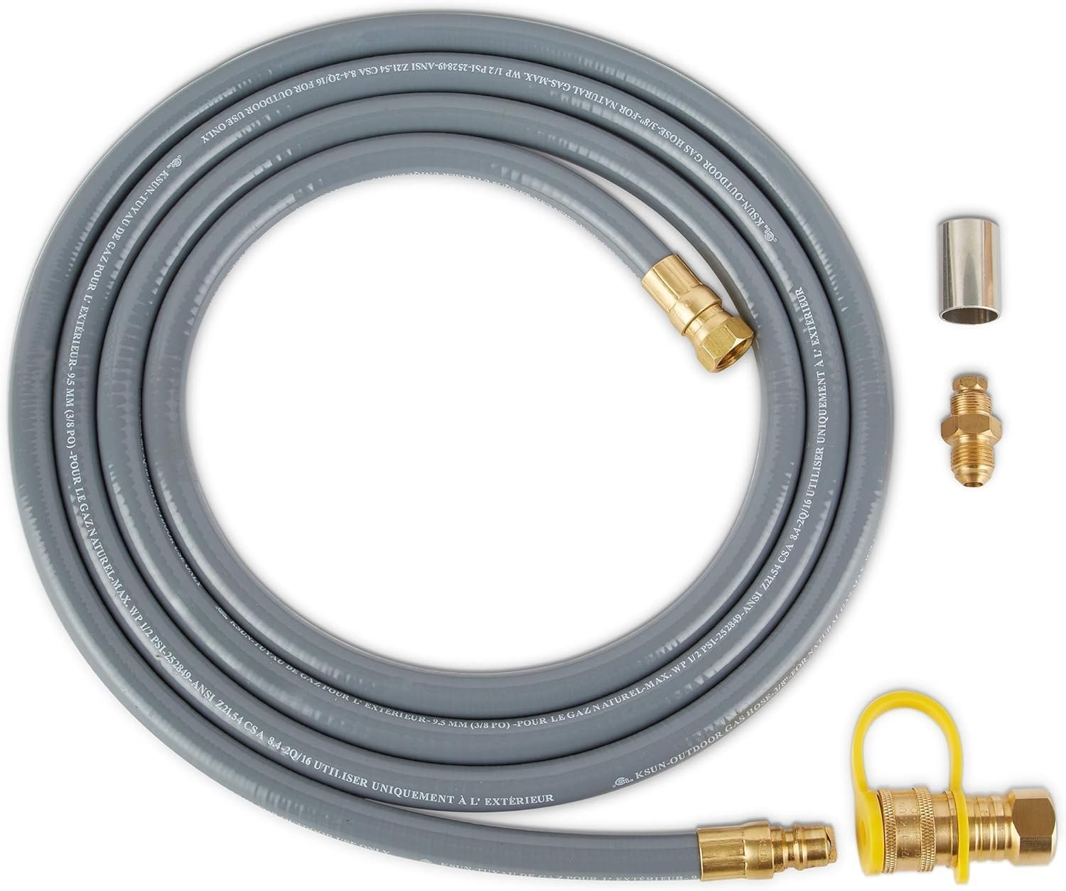 • Propane or Natural Gas: Includes a 9-foot LP hose with a regulator, and a natural gas conversion kit with a 10-foot NG hose and quick-connect fitting. Can be converted to natural gas by a certified gas technician.