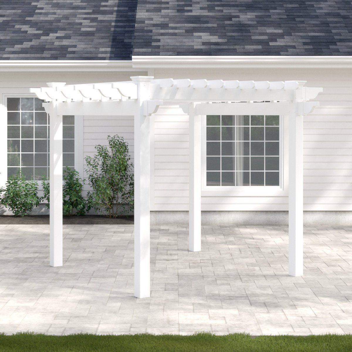 - The Queensbrook 9.5 Ft. W x 9.5 Ft. D Vinyl Pergola will not hold the weight of a swing. The maximum weight limit is 150 pounds which would need to be distributed around the pergola, not all in one area.