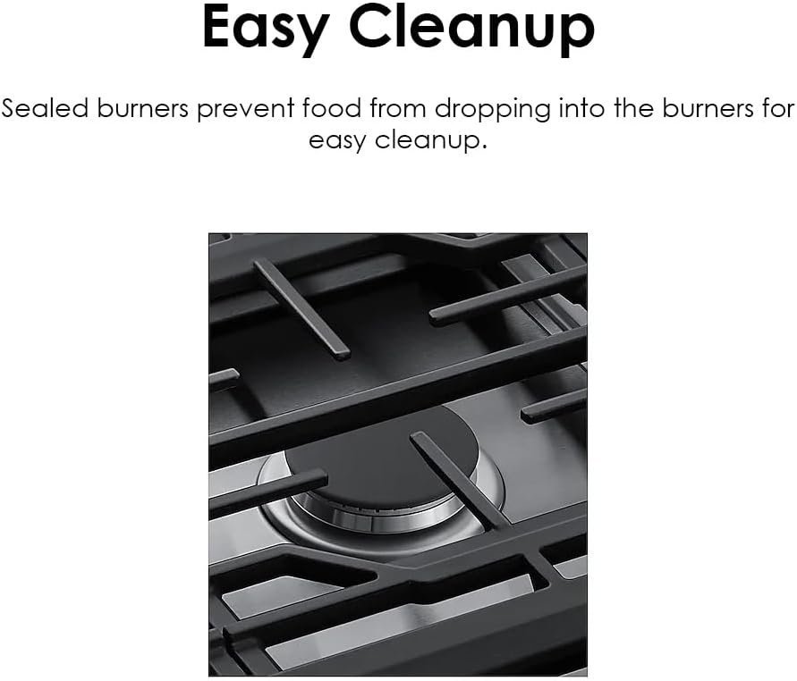 - EASY CLEANUP: Sealed burners prevent food from dropping into the burners for easy cleanup.