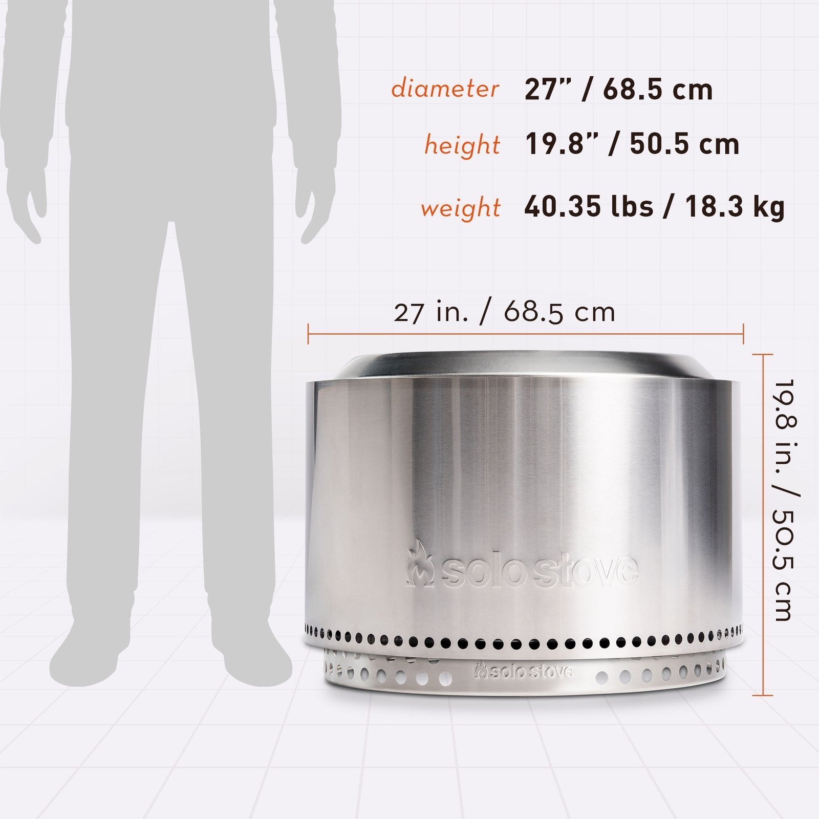 - LARGEST SOLO STOVE: Coming in at 27 inches, the Yukon out measures all other Solo Stove fire pits, creating the hottest and most effective fire to make time with your friends and family richer. Enjoy S’mores and Hot Dogs by the fire and relax. The new 2.0 version features a removable base plate and ash pan for easy cleaning.