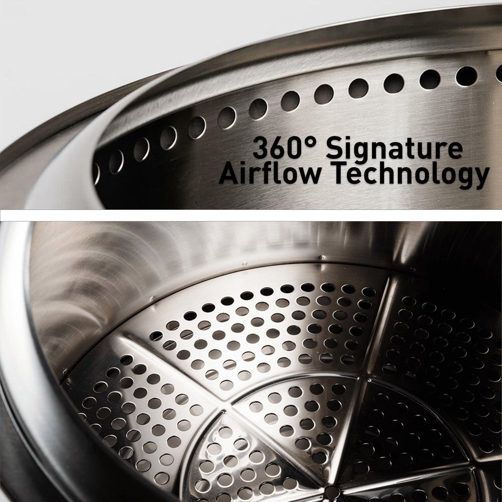 - LONG LASTING & REMOVABLE ASH PAN: 304 stainless steel is highly durable, surprisingly lightweight, and won’t cave under the pressure of an ultra-hot flame. Our new, removable ash pan rests under the base plate, catching all the fine ash in one place. For clean up just lift the base plate to remove the ash pan, clean out its contents, and that’s it!