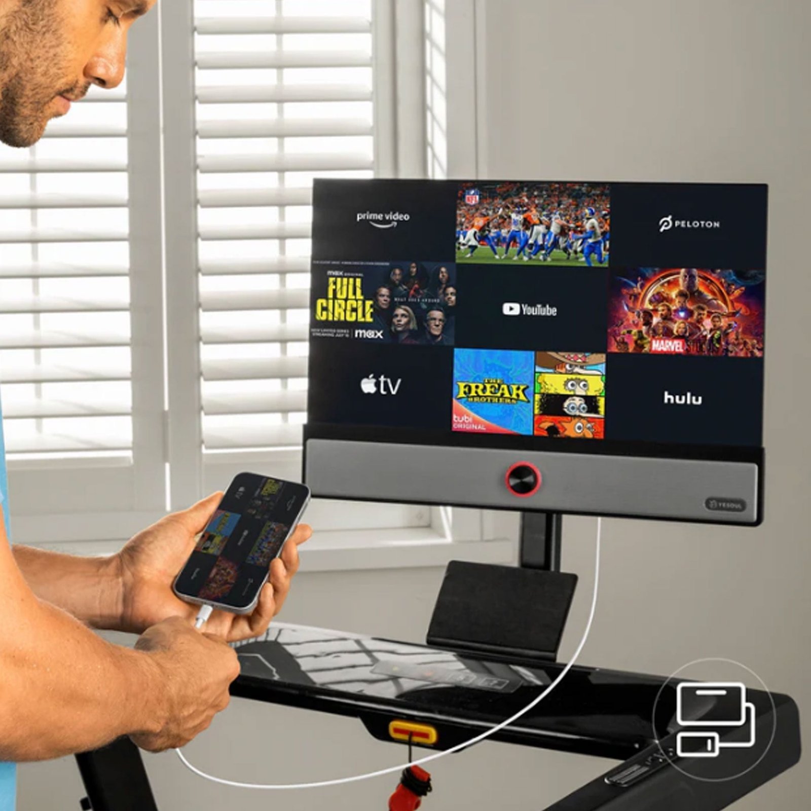 Supports YESOUL, Kinomap, ZWIFT, and Jacfit. Stream workouts and track data via Wi-Fi or Type-C DisplayPort. - Space-Saving Foldable Design